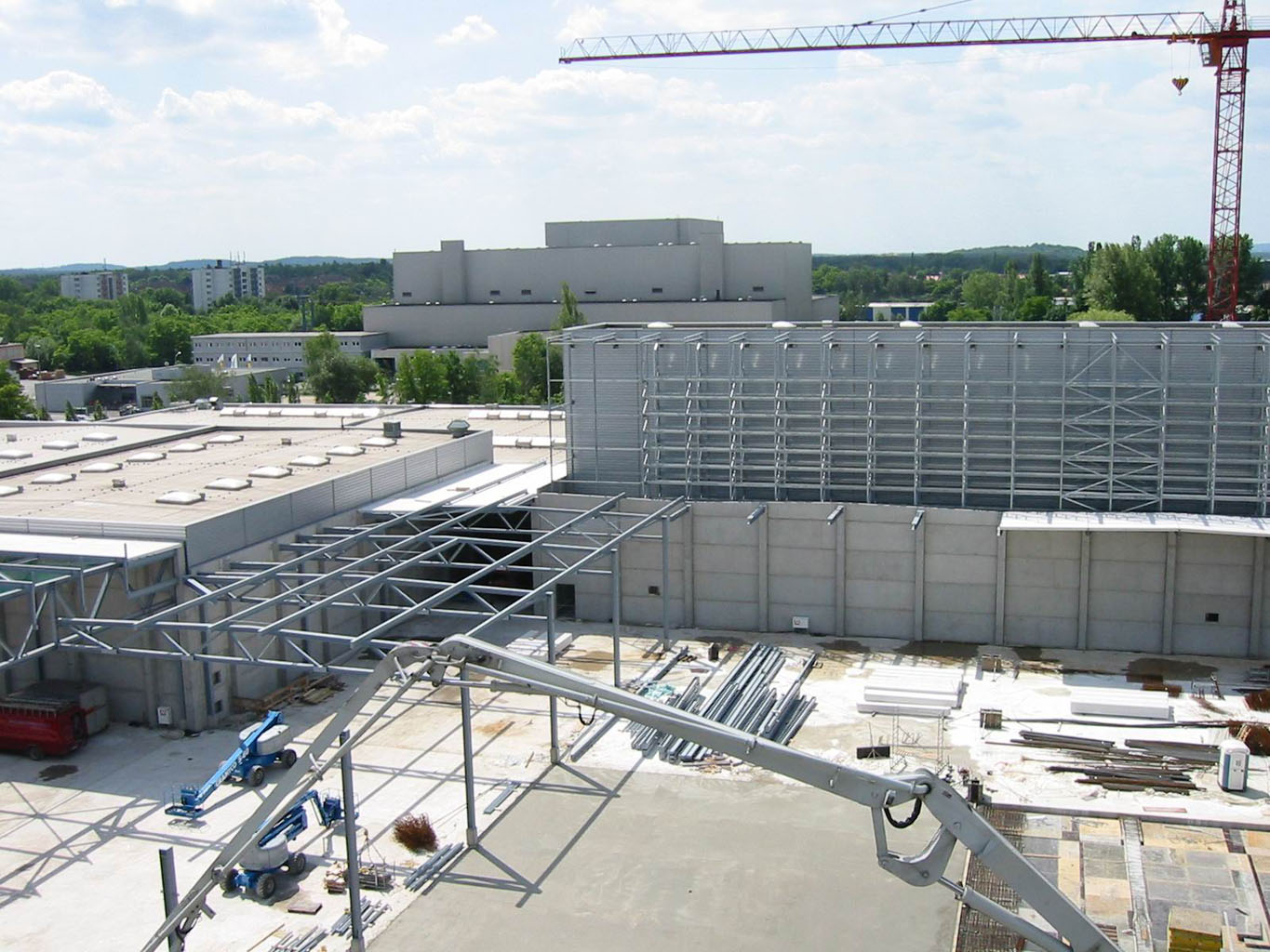 Erweiterung Lieferzentrum mit Versand-, Kommissionierhalle, Hochregal- u. automatisches Kastenlager, Bürogebäude, Pforte und Parkplatz / Nürnberg / 2001 - 2003
